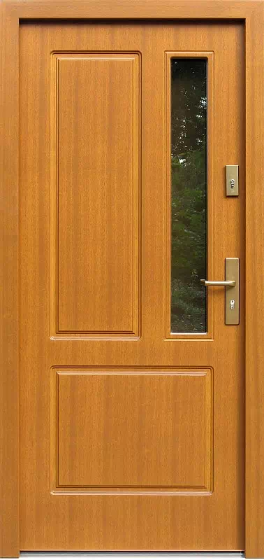 Model zaprojektowany specjalnie na rynek niemiecki i czas pokazał ze to był trafiony projekt dlatego ze jest to ulubiony model drzwi zewnętrznych zamawiany przez mieszkańców z za Odry. Powyższy, przykładowy egzemplarz drzwi zewnętrznych został wymalowany na kolor: jasny dąb.