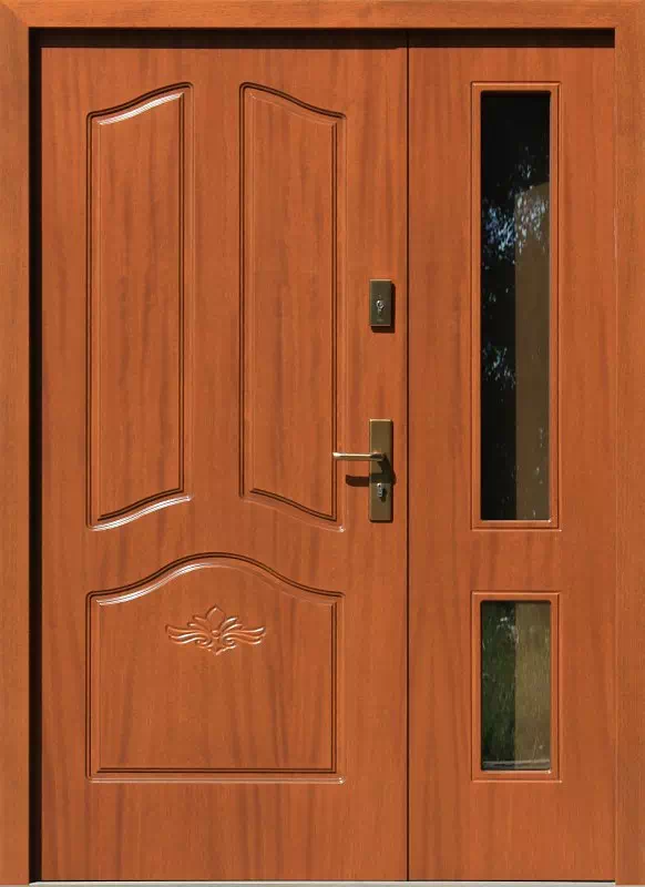Ten model mimo upływu czasu także znajduje się na liście popularnych modeli dwuskrzydłowych. Powyższy, przykładowy egzemplarz drzwi zewnętrznych został wymalowany na kolor: dąb średni.
