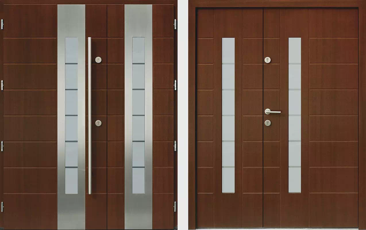 Charakterystyka dwuskrzydłowych drzwi wejściowych model 942,1-942,11+ds11 orzech
