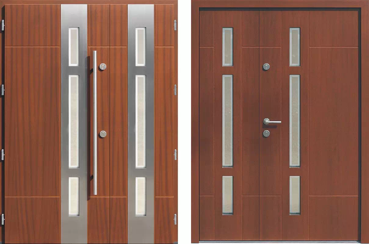 Charakterystyka dwuskrzydłowych drzwi wejściowych model 943,2-943,12+ds1 orzech