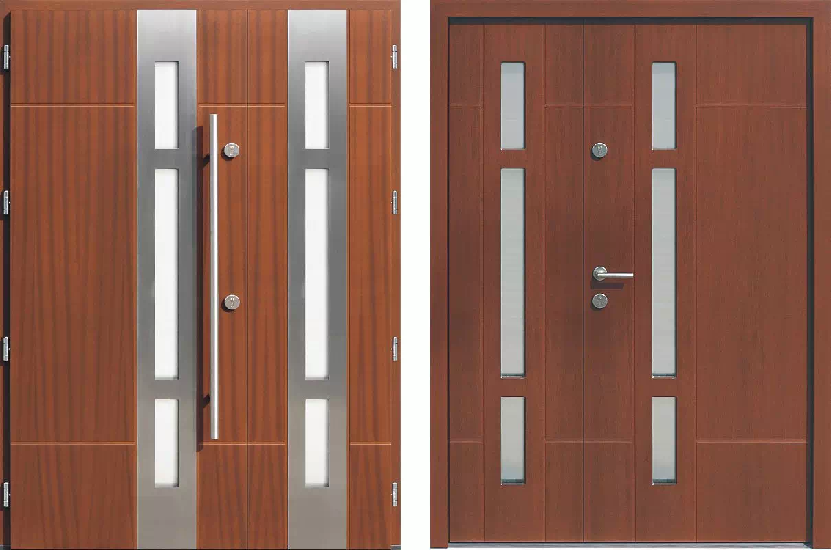 Charakterystyka dwuskrzydłowych drzwi wejściowych model 943,2-943,12 orzech