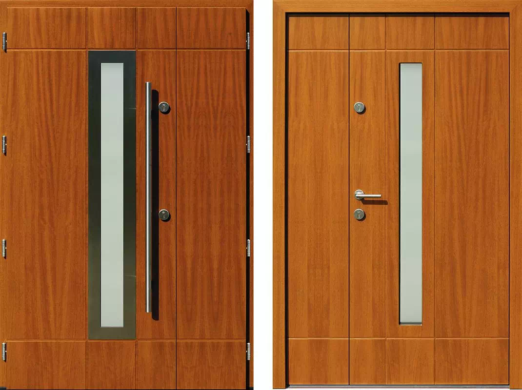 Charakterystyka dwuskrzydłowych drzwi wejściowych model 944,1-944,11 dąb ciemny