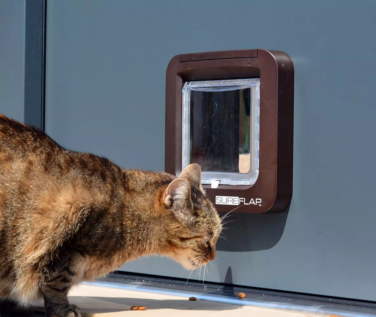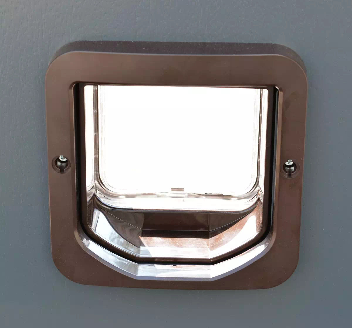 Klapkę dla kota (zwykle z chipem identyfikującym 'właściwego' czworonoga, dla którego 'przejście stoi otworem') montujemy zarówno w drzwiach zewnętrznych do domów jak i wejściowych do mieszkań.