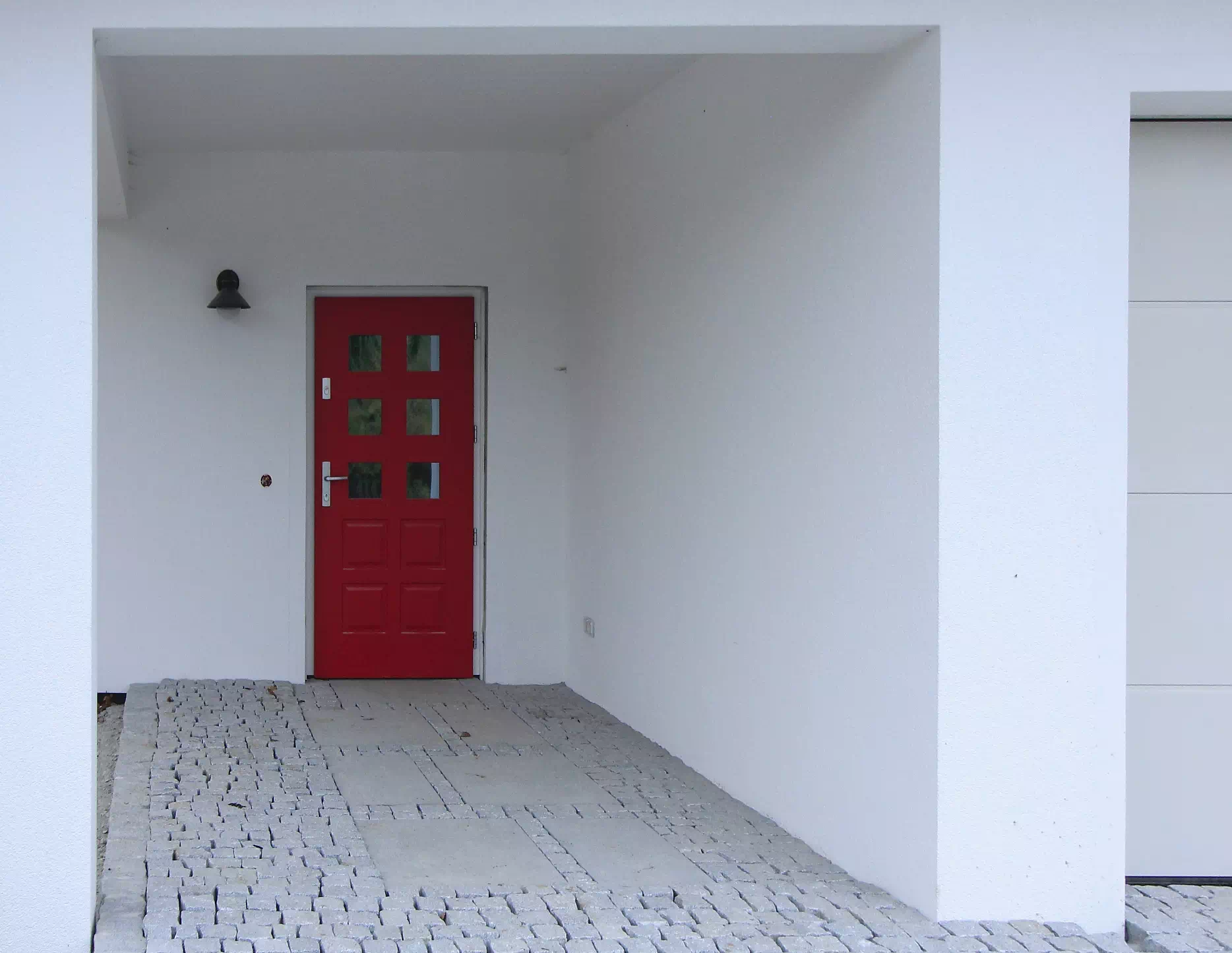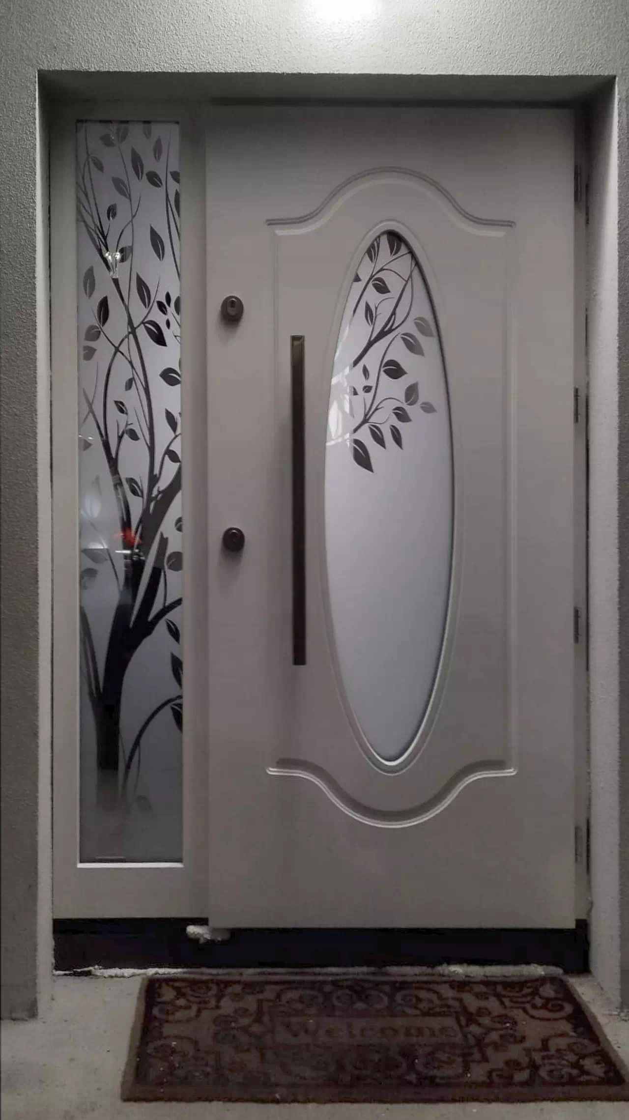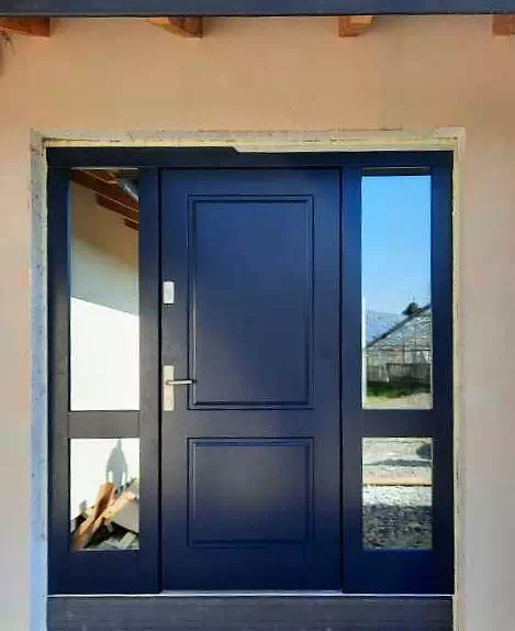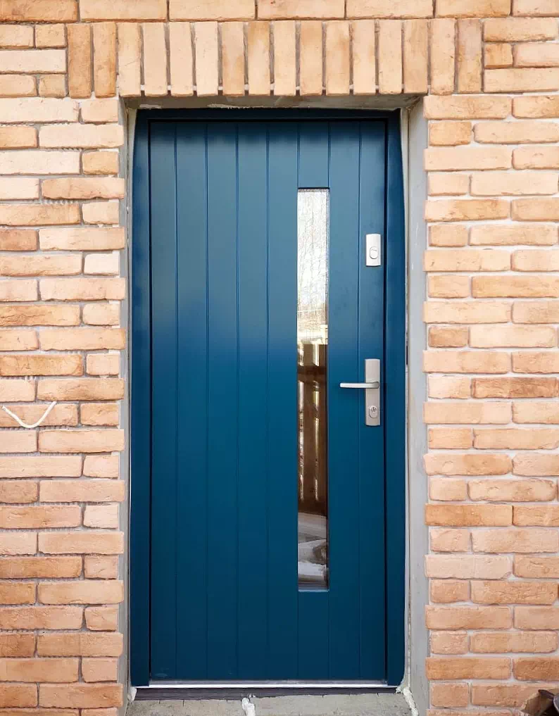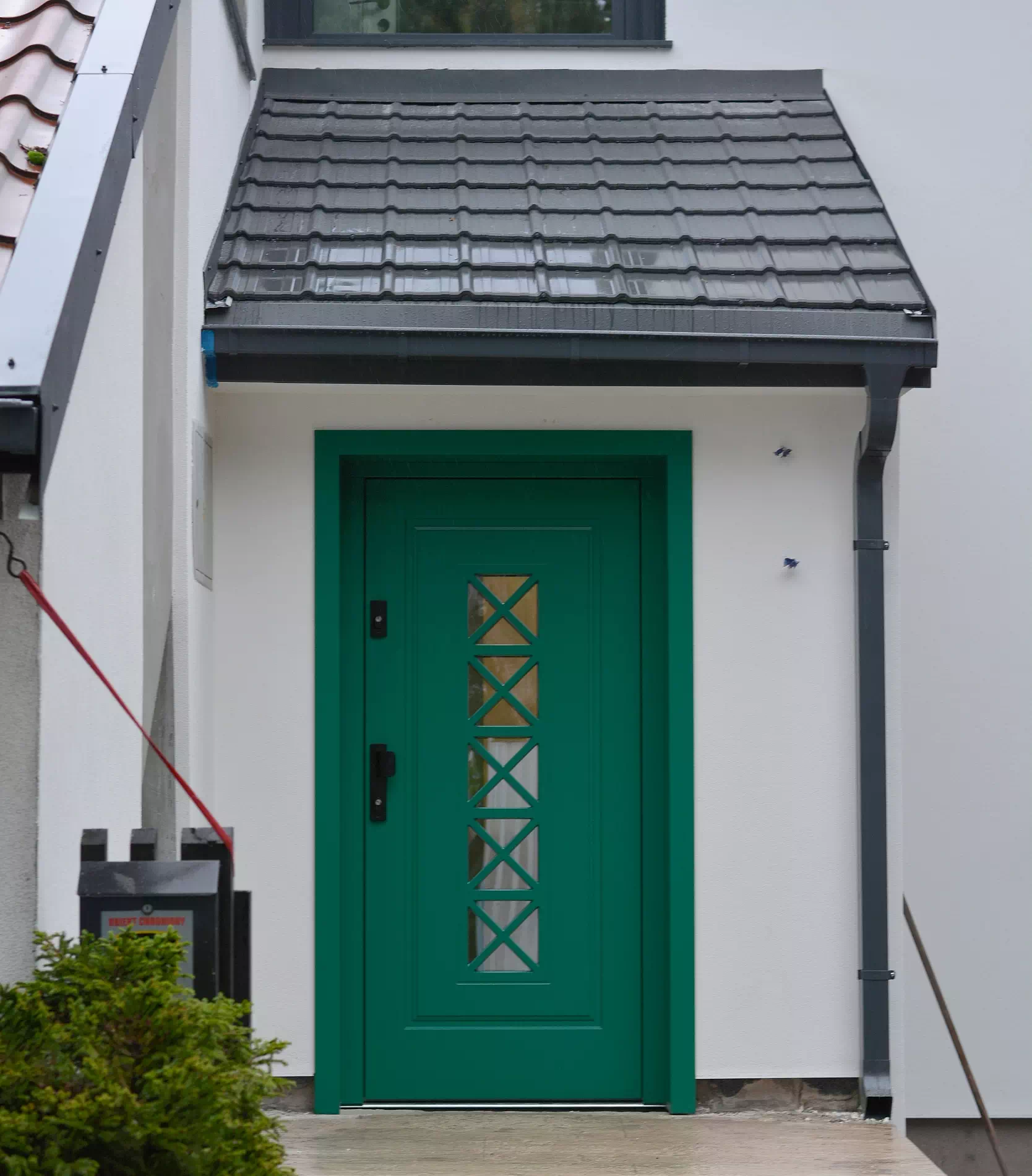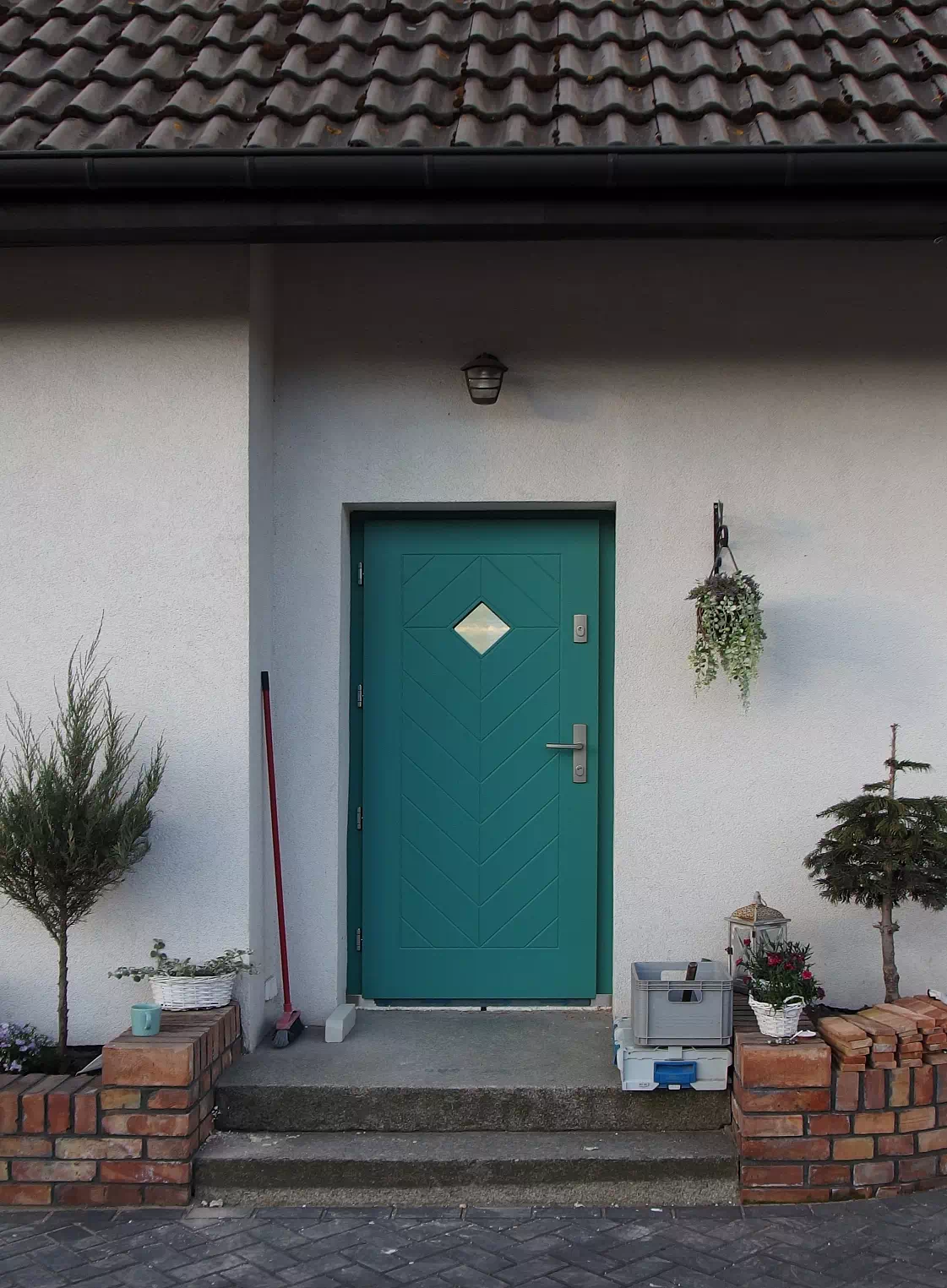 Przykład wymiany drzwi wejściowych na szklony model drzwi zewnętrznych którego wzór oparty na tradycyjnej klepkowej technologii produkcji i wykorzystaniu nowoczesnej technologii produkcji z użyciem obrabiarek CNC. Jest on najczęściej montowany w domach jednorodzinnych o tradycyjnej architekturze.