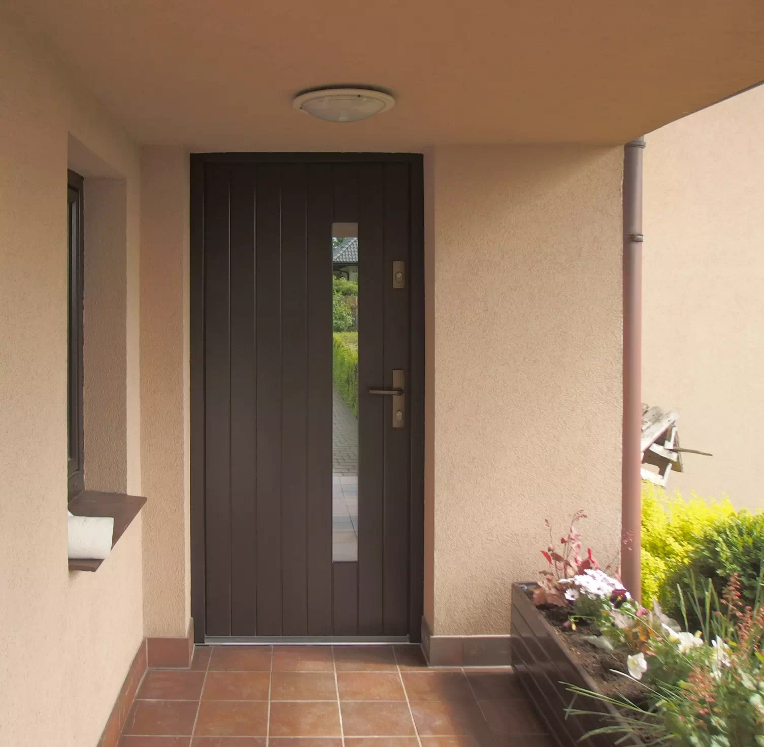 Przykład wymiany drzwi wejściowych na model drzwi zewnętrznych którego wzór oparty na tradycyjnej klepkowej technologii produkcji. Jest on najczęściej montowany i wymieniany w domach jednorodzinnych urządzanych w tradycyjnym, klasycznym stylu.