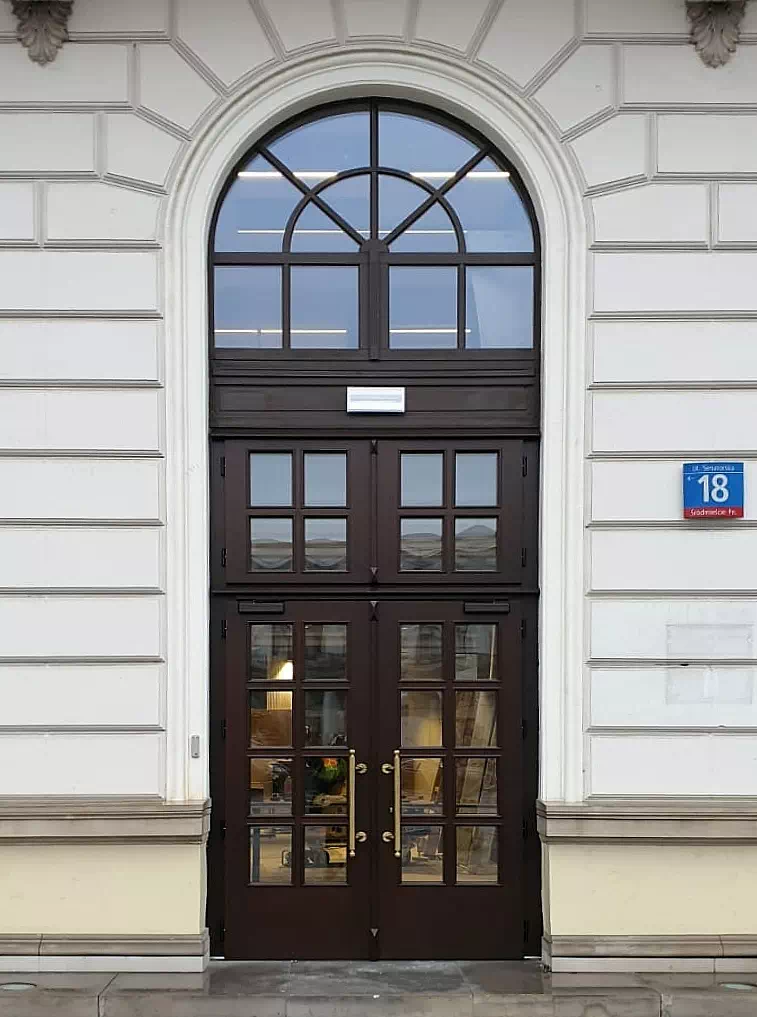 Przykład wymiany drzwi zabytkowych będących pod nadzorem konserwatora zabytków. Drzwi wizualnie nie odbiegają od starego oryginału ale są od nich ponad 2 razy grubsze i cieplejsze, oraz są wyposażone w nowoczesne zamki i automatykę przeciwpożarową i rozbudowaną kontrolę dostępu.