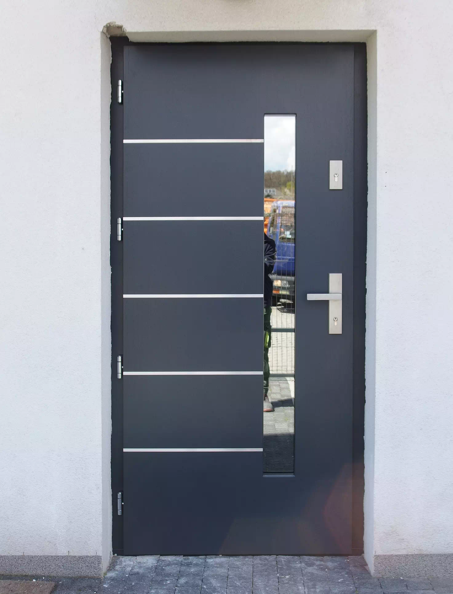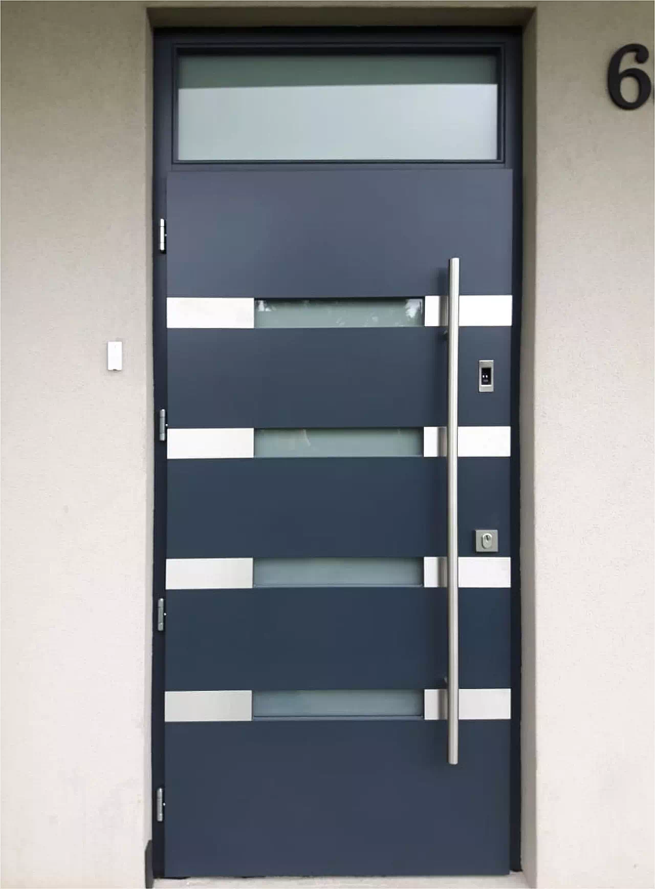 Ten model drzwi zewnętrznych charakteryzuje wąskim, prostokątnym przeszkleniem usytuowanym po stronie zamka, oraz 6 poziomym rowkami ozdobnymi. W przykładowej wersji drzwi zostały zastosowane szyby grafit-reflex. Drzwi te są najczęściej montowane lub wymieniane w domach jednorodzinnych o skromnej, nowoczesnej architekturze.